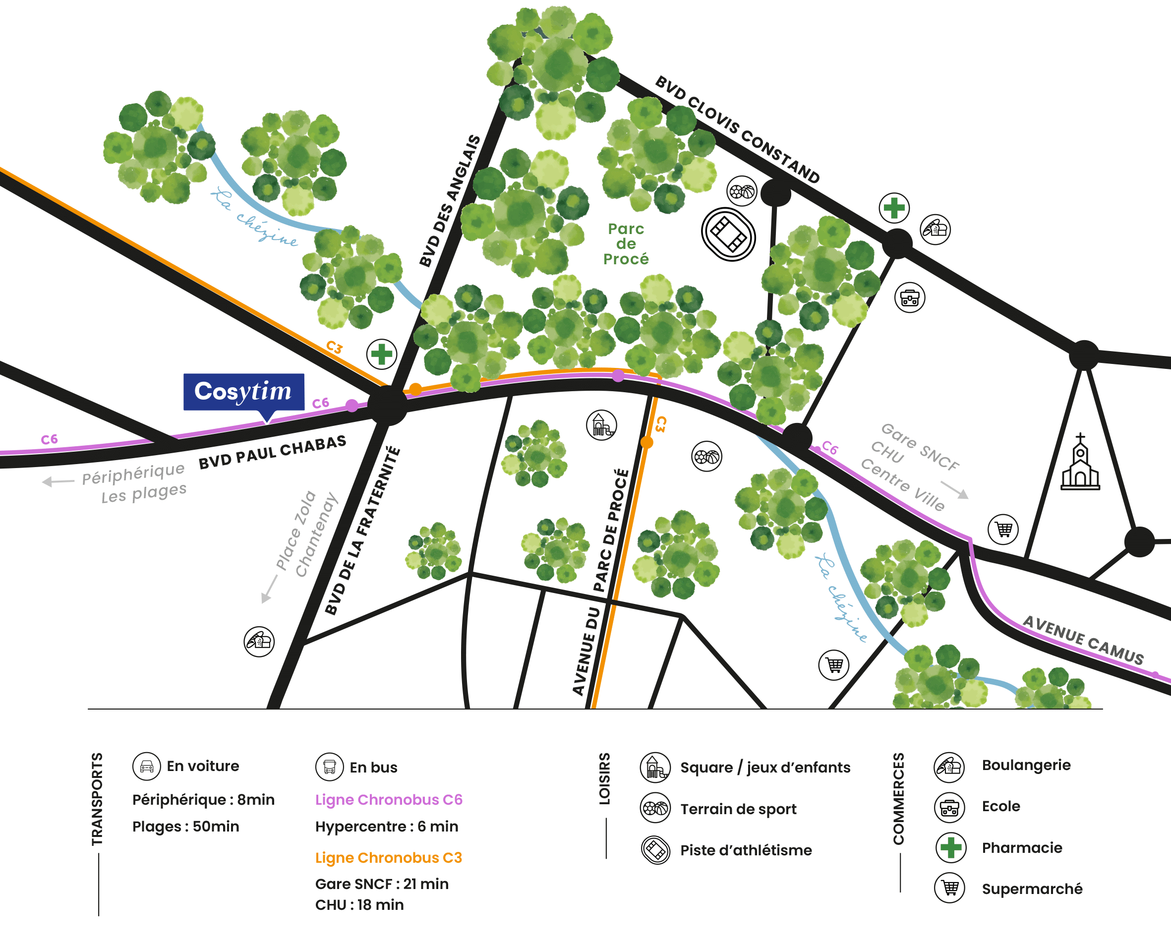 Au cœur du quartier verdoyant et recherché du Parc de Procé, Qualytim dévoile Cosytim Parc de Procé, une résidence intimiste de seulement 17 appartements du T1 bis au T3. Idéalement située, elle conjugue le charme résidentiel d’un environnement naturel et la proximité immédiate des commerces et services du centre-ville.