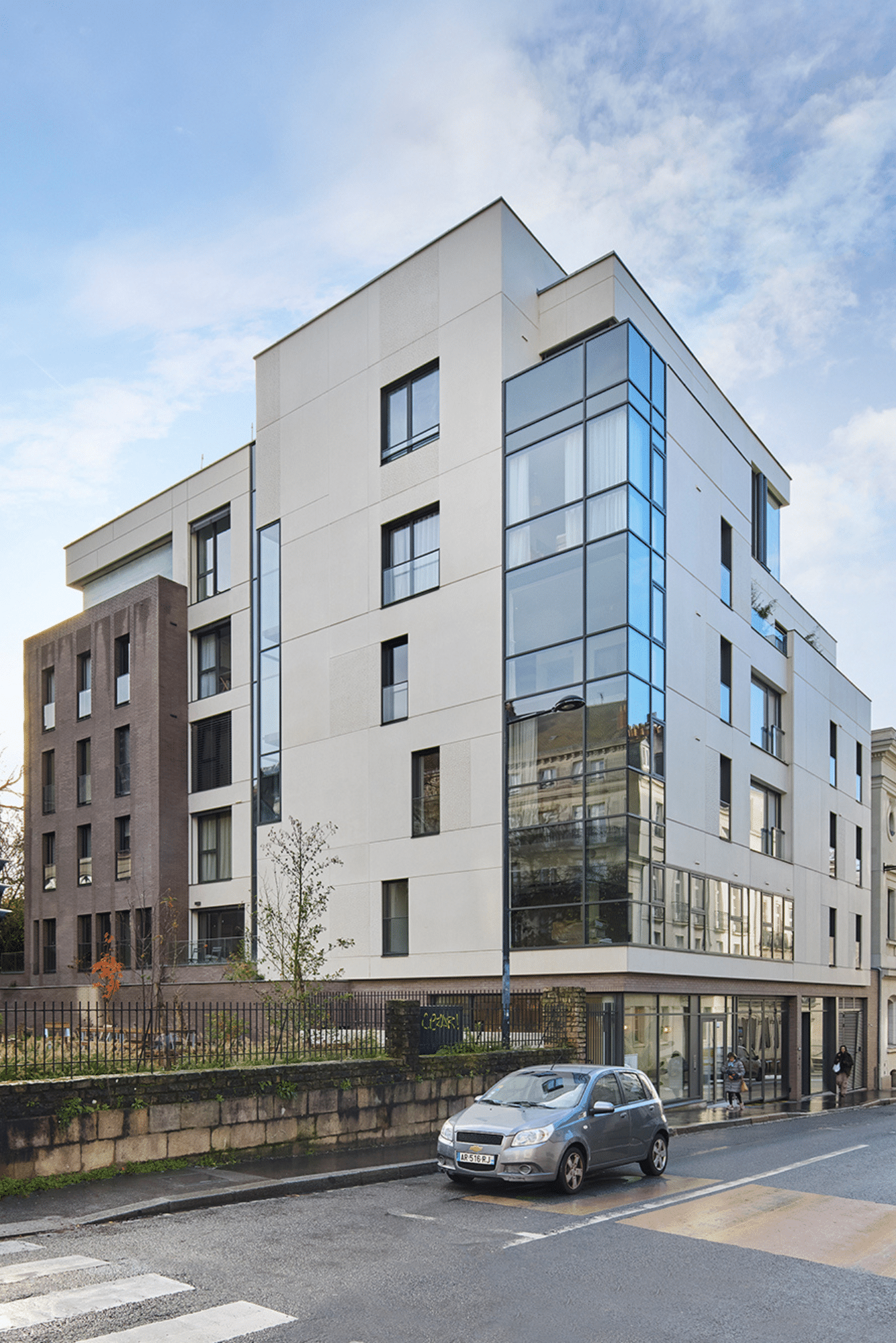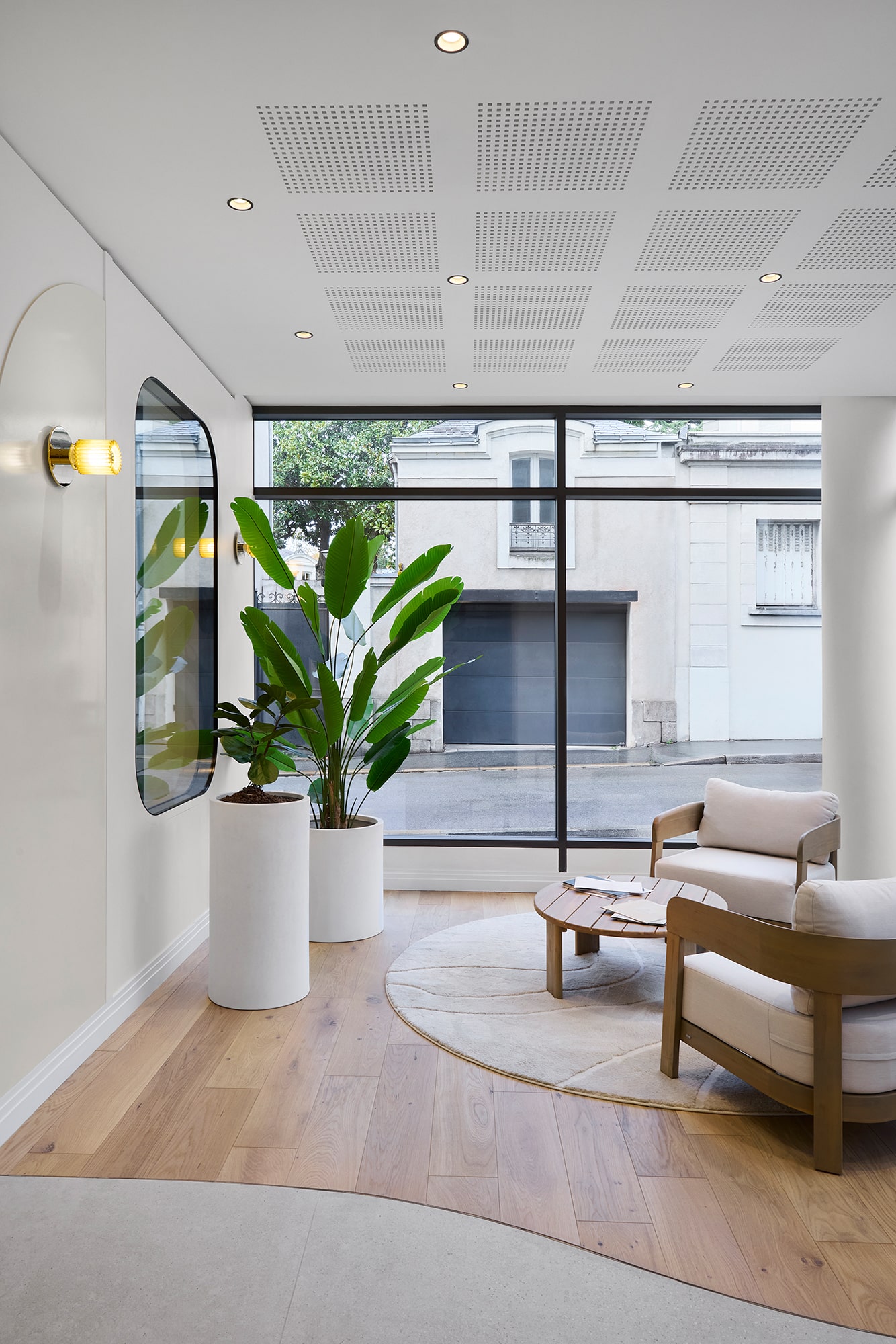 Le bâtiment neuf, sur cinq étages est desservi par un ascenseur panoramique. Il accueille seulement 7 appartements du studio au 4 pièces, offrant des volumes généreux, des prestations haut de gamme et des espaces de vie lumineux. À ses côtés, l’ancien théâtre a été entièrement réhabilité sur trois étages pour accueillir des bureaux, dans un dialogue harmonieux entre architecture historique et lignes contemporaines.